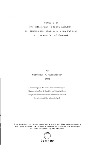 Aspects of pre-migratory feeding ecology of sanderling (Calidris alba pallas) at Teesmouth, NE England