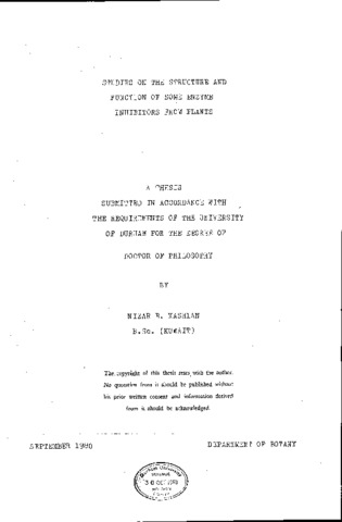Studies on the structure and function of some enzyme inhibitors from plants.