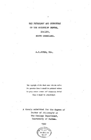 The petrology and structure of the Motzfeldt centre, Igaliko, south Greenland.