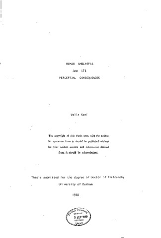The presence of ocular defects of an optical or muscular nature during early childhood can cause amblyopia: a reduction in visual acuity of the defective eye. The research reported in this thesis investigated the impact of amblyopia on some aspects of visual perception by evaluating three main perceptual functions: precision of judgement of spatial relationships (in three-dimensional space), ability to detect depth in tests of stereopsis, and contrast sensitivity. In some experiments amblyopic subjects were paired with non-amblyopic subjects who had monocular acuity deficits owing to uncorrected refractive errors, in order to assess the importance of the acuity deficit as a determinant of other perceptual losses suffered by amblyopes. In an alignment task non-amblyopes with monocularly reduced acuity performed significantly better than amblyopes, suggesting that the acuity deficit was not solely responsible for amblyopes' perceptual deficit in this task. However, in another experiment in which a greater variety of spatial cues was provided amblyopes performed as well as non- amblyopes. Thus their perceptual skills would seem to be adequate for efficient functioning in most normal environments where spatial cues are abundant. Previous reports that amblyopes generally lack stereopsis were confirmed in two experiments with a few interesting exceptions, whose cases are discussed. The data obtained in the four experiments on space perception and stereopsis in amblyopia provided support for most current theories in these areas. Experiments on contrast sensitivity showed that the losses suffered by amblyopes, as measured by interocular comparison, varied between individuals, both in depth and in bandwidth (the range of spatial frequencies affected). This variation was not directly related to the extent of acuity deficit, or to the condition which originally gave rise to amblyopia, but did seem connected with the age at which the subject first received treatment for the primary causative ocular defect. A similarity between the contrast sensitivity functions of amblyopic eyes and those of infant eyes is considered as a basis for explaining the nature of contrast sensitivity loss in amblyopia. Some preliminary attempts to measure contrast sensitivity in infancy by methods suitable for screening purposes are described in the final chapter. The thesis includes a historical review of theories of amblyopia derived from clinical and experimental work on human subjects, and a critical evaluation of experimental work in which animals were visually deprived with a view to measuring the contributions of experience to visual development. The claims of some authors that such work may have clinical relevance for preventing or treating amblyopia are refuted, since clinical experience has already furnished sufficient evidence to achieve these ends. The perceptual consequences of human amblyopia, as characterised in the present research have important practical implications for the amblyope, and important theoretical implications for models and mechanisms of visual perception and its development.