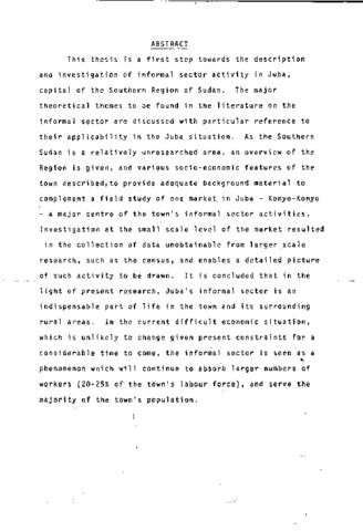 Aspects of the informal economic sector of Juba southern Sudan