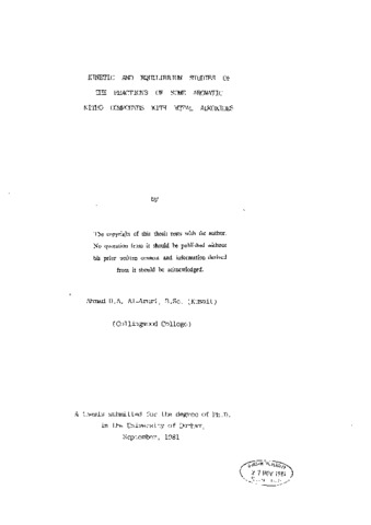 Kinetic and equilibrium measurements have been made for σ-adduct formation from propoxide ions in propan-1-ol with 1,3,5-trinitrobenzene and a series of l-propoxy-2,4-dinitro-6-x-benzenes ( x = NO(_2), Cl, CO(_2)Pr, H).The results are compared with those for similar additions of other alkoxide ions. There is evidence for strong association with sodium ions o f the 1,1-dipropoxy adducts, but adducts formed by base additions at unsubstituted ring positions are not strongly associated. In the nucleophilic substitution reaction with l-chloro-2,4-dinitrobenzene free propoxide ions show greater reactivity than sodium propoxide ion pairs. Rate and equilibrium studies are reported for the reactions of three aromatic nitro-compounds with tetramethylarrmonium hydroxide in t-butyl alcohol water mixtures. There is evidence that the reactive nucleophile is t he hydroxide ion rather than the t-butoxide ion. The reaction of 1,3,5-trinitrobenzene in this system leads to a σ-adduct, while l-chloro-2,4-dinitrobenzene gives 2,4-dinitrophenol. That the rates of both these reactions falls rapidly with increasing water content is attributed mainly to the good solvation of the hydroxide ion by water. In contrast the rate of formation of picric acid from picryl chloride increases with water content due to initial formation of the 3-hydroxy adduct. Similar studies have been made using sodium and/or potassium butoxide The interpretation here is complicated by association with anions of the alkali metal cations. In the presence of methoxide ions in methanol 2-methoxy-3,5-dinitrobenzoic acid gives a a-adduct. Using this reaction, acidity functions for lithium, sodium and potassium methoxide solutions have been defined. The observed b a sicity order : sodium methoxide > potassium methoxide > lithium methoxide may derive from specific interactions of the alkali cations with the σ-adduct. Using U.V./visible data the reversible equilibria between 1-x-2,4,6-trinitrobenzenes ( x = NMe(_2), NHMe, NH(_2), OMe or CCH(_2)CH(_2)O) and alkali metal methoxides have been investigated. Usually 1:1, 1:2 and 1:3 interactions are observed. One conclusion is that in general 1:2 and 1:3 adducts associate more strongly with sodium ions than with potassium ions or with lithium ions.