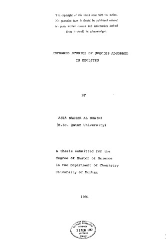 The work described in this thesis is concerned with the investigation of the infrared study of zeolites and species adsorbed on zeolites. In the first three chapters there are accounts on the zeolites structure and chemistry as well as the instrumentation and techniques which have been used. In the fourth chapter a study of the formation of coke on CaY zeolite and the various factors which influence its presence on the zeolite is reported. Chapter five is concerned with the presence of the hydronium ion formed by adsorbing water vapour on zeolites. Mn 4A zeolite can form the hydronium ion, while Co-4A does not. Finally, in chapter six, we report a study of cyclopropane gas adsorbed on Mn(II) and Co(II) partially exchanged A zeolites.