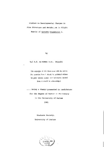 Studies on developmental changes in fine structure and metabolism in flight muscle of Locusta migratoria L.