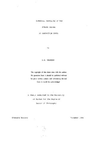 The stress regime at subduction zones has been modelled using a visco-elastic, quadratic isoparametric finite element model. An isoparametric model is used because it performs more accurately than constant strain triangular elements (CST) and also allows curved sided elements to be introduced.A method for modelling the frictional sliding on Isoparametric fault elements has been developed by extending Mithen's (1980) CST model. The resulting method is suitable for modelling the deformation on both plane and listric, normal and thrust faults. Graben widths predicted by normal fault models agree with analytic solutions and this implies than Mithen's CST models failed to do so because they were too stiff. Application of this model to subduction zones demonstrates that the slab pull force induces tension in the subducting plate and compression in the overlying plate. Part of the lateral variation in stress which is observed at all subduction zones is therefore inferred to arise from the slab pull force. Differences in the magnitude of these stresses at different subduction zones may therefore be accounted for by local variations in the magnitude or dip of the slab pull force, and also by the extent of the coupling across the plate boundary. Various forces account for the stress regime in back arc regions. Tensional stress is generated by lateral density variations, and the heating and shearing caused by slab induced convection. Compressive stress, arising from the slab pull force, is superimposed upon this. The magnitude of the compression, however, is dependent upon the dip and size of the slab pull force and also the degree of mechanical coupling between the plates at the subduction zone fault. Local variations in the magnitude of the compressive stress may therefore explain why the stress regime is observed to be so variable in back arc regions, and is more commonly tension than compression.