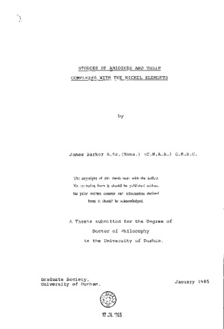 Studies of amidines and their complexes with the nickel elements
