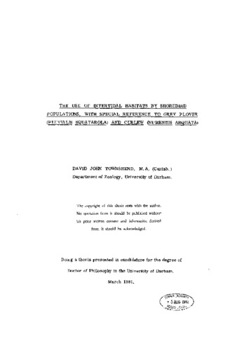 The use of intertidal habitats by shorebird populations, with special reference to grey plover (Pluvialis Squatarola) and Curlew (Numenius Arquata)