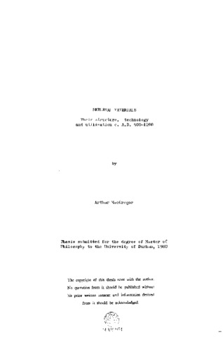 In the absence of previously published integrated studies, an attempt is made here to lay the foundations for a systematic approach to the examination of artifacts made from skeletal materials. Four principal groups of raw material are discussed in terms of formation, structure, morphology and availability : skeletal bone from species found within the geographical limits of the study; antlers from extant species of deer and from reindeer, which are no longer found within the regionivory from mammalian teeth, including the tusks of walrus, elephant and mammoth; keratinous hard tissues (which are not of skeletal derivation but which may usefully be considered in association with the other materials reviewed here). The mechanical properties of these materials are compared and contrasted, their fitness for particular roles being demonstrated scientifically : the reasons for the widespread preference of antler as a raw material are identified in this way and certain constructional features of composite objects explained. Working methods used in manufacture are discussed on the basis of close examination of the objects themselves, together with other evidence from archaeological sources and, to some extent, from records of practices noted more recently among related crafts. Chemical softening as a method of moulding and working skeletal materials is discussed and illustrated with the results of practical experiments carried out by the writer. A typological review of the artifacts follows, principally those found in the British Isles during the period c_. A.D, 400-1200; both geographical and chronological limits are freely crossed, however, in order to incorporate further evidence which may illuminate the material under review. The objects concerned are placed within a wider technological and historical background, while reference is made wherever possible to the considerations dealt with in earlier chapters. Catalogues of find spots are given for the objects on which the discussion is based