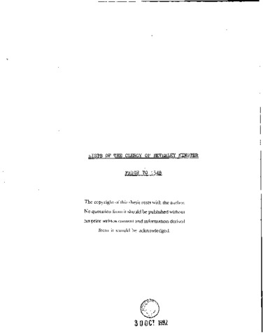 subject - Volume 2 - Lists of the clergy of Beverley minster prior to 1548