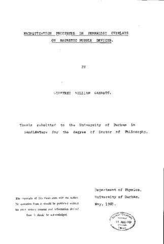 magnetization processes in permalloy overlays on magnetic bubble devices.