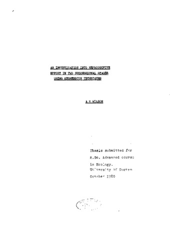 An investigation into reproductive effort in two successional stages using regression techniques.