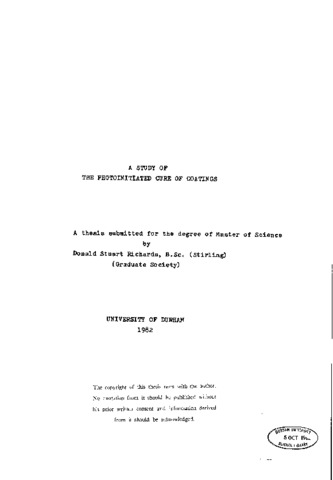This thesis describes an investigation into the photo- initiated cure of epoxide coatings. Diaryliodonium salt photoinitiators were prepared and characterised in the laboratory. The analysis and characterisation of some industrial epoxide resins was also carried out before they were used in the preparation of coatings. A series of lacquers was prepared and exposed to ultra-violet radiation. The cure characteristics of these coatings were investigated by qualitative and quantitative methods. This aspect of the work yielded some interesting results which are discussed in the final chapter.