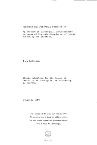 Ideology and political association: An account of ideological understanding in terms of its relationship to political authority and practice.