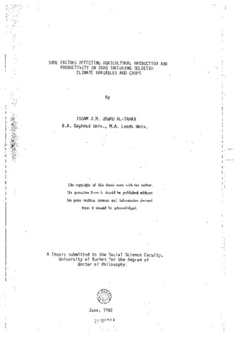 Some factors affecting agricultural production .and productivity in Iraq including selected climate variables and crops