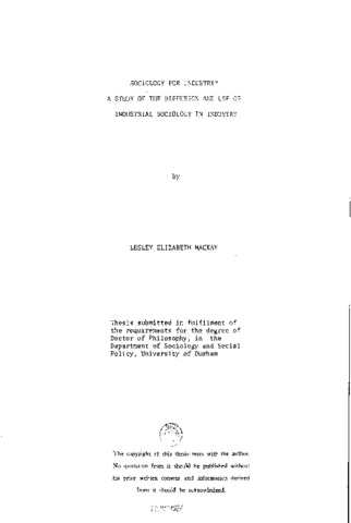 Sociology for industry?: a study of the diffusion and use of industrial sociology in industry