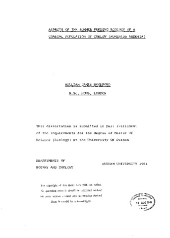 Aspects of the summer feeding ecology of a coastal population of curlew (numenius arquata)