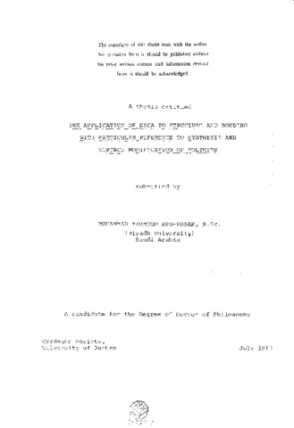 Electron mean free paths as a function of kinetic energy have been measured by the substrate overlayer technique forin-situ polymerised films of polyparaxylylene, using a Ti(_ka1,2) (hv = 4510 eV) X-ray source. The results are compared with those previously reported at lower kinetic eneraies using Mg(_ka1,2) (1254 eV) and A1(_ka1,2) (1487 eV) photon sources ESCA is used to study structure, bonding and reactivity of polymeric materials, in particular those prepared by R.F. (radio-frequency), "glow discharge techniques", (plasma polymerisation) .Plasma polymerised films of perfluoropyridine have been investigated for a range of operating parameters, in both free-standing and in-situ reactors. A comparison of the stoichiometries and rates of deposition has been drawn with plasma polymers produced under comparable conditions from perfluoro and pentafluorobenzenes. Ultra thin polymers produced by plasma techniques from three isomeric perfluorinated diazines (pyrazine, pyrimidine and pyridazine) have been investigated. The polymer produced from the 1,2-diazine is discussed in some detail. A combination of ESCA and microanalytical studies show that the C:F and C:N stoichiometrics are closely similar to those for the starting monomers, over a range of operating parameters. The surface hydrolysis of these polymers with water as a function of time has been studied. The rates of polymer deposition are discussed as a function of the composite parameter W/FM. The rates of deposition reveal distinctive differences between the isomeric diazines and those of plasma polymer films for isomeric fluorinated benzenes. Laminate films based on LDPE and PET adhesively bonded with polyurethane adhesives have been investigated by ESCA. The change of surface chemistry of these films has been compared with the non-laminated base polymer of LDPE and PET. Migration and segregation phenomena in the laminates has been investigated. ESCA has been used to investigate the surface chemistry of heat treated LDPE (low and high-slip agent) and PET. The results indicate that thermally promoted reactions at the surface may well be different than those in the bulk.
