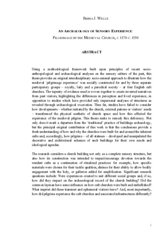 An Archaeology of Sensory Experience: Pilgrimage in the Medieval Church, c.1170-c.1550