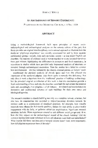 Using a methodological framework built upon principles of recent socio-anthropological and archaeological analyses on the sensory culture of the past, this thesis provides an original interdisciplinary socio-sensual approach to illustrate how the medieval ‘pilgrimage experience’ was socially constructed for and by three separate participatory groups – royalty, laity and a parochial society – at four English cult churches. The tapestry of evidence used is woven together to create invented narratives from past visitors, highlighting the differences in perception and lived experience, in opposition to studies which have provided only impersonal analyses of structures as revealed through archaeological excavation. Thus far, studies have failed to consider how developments – whether initiated by the church, external patrons or visitors’ needs – transformed the physical aesthetic of church space and how this affected the experience of the medieval pilgrim. This thesis seeks to remedy this deficiency. Not only does it mark a departure from the ‘traditional’ practice of buildings archaeology, but the principal original contribution of this work is that the conclusions provide a fresh understanding of how and why the churches were built for and around the inherent cults and, accordingly, how pilgrims – of all statuses – developed and manipulated the decorative and architectural schemes of such buildings for their own needs and ideological agendas. The research considers a church building not only as a complete sensory structure, but also how its construction was intended to impact/encourage devotion towards the resident cults as a continuation of ritualised practices: for example, how specific materials were chosen for their tactile qualities, shrines for their ability to allow bodily engagement with the holy, or galleries added for amplification. Significant research questions include: Were experiences created to suit different social groups and, if so, how did they impact on the archaeological record of the church building? Did the common layman have some influence on how cult churches were built and embellished? What imprint did these transient and ephemeral visitors leave? And, most importantly, how did pilgrims experience the cult churches and associated infrastructures them differently?