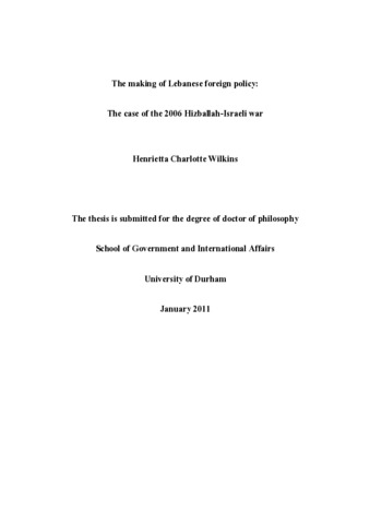 The making of Lebanese foreign policy: The case of the 2006 Hizballah-Israeli war