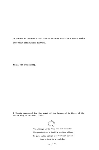 Orientations to work: the effects of work experience and a search for other influencing factors