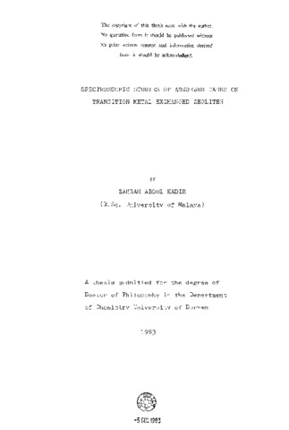 Spectroscopic studies of adsorbed gases on transition metal exchanged zeolites
