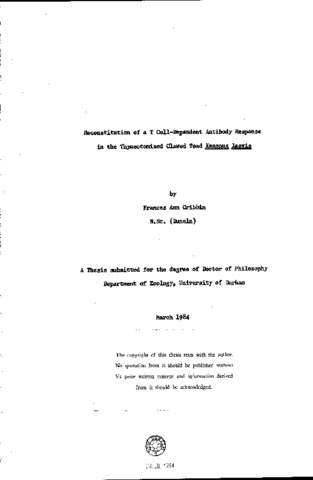 Larvally thymectomized Xenopus laevis are unable to mount an antibody response to thymus-dependent antigens. In Chapter 2, larval thymuses incompatible at the major histocompatibility complex (MHO) (either irradiated or non-irradiated), and both MHC-compatible and incompatible "adult" thymuses implanted to thymectomized animals early in larval life, were found to restore cellular and serum antibody production to the thymus-dependent antigen sheep erythrocytes. Functional studies on thymocytes and splenocytes were carried out in Chapter 3 to determine whether thymocytes were relatively free from contaminating B cells and could be used as a "pure" source of T cells for cellular reconstitution experiments. It was shown that both thymocytes and splenocytes could be stimulated in vitro by the B cell nitrogen Escherichia coli lipopolysaccharide to differentiate into cytoplasmic immunoglobulin M-producing cells. Thus thymocytes were found to include a population of B lymphocytes. The experiments reported in Chapter 4 were designed to find a suitable method for the depletion of B cells from lymphocyte populations to be used for cellular reconstitution. Nylon wool filtration proved to be inefficient at depleting B cell numbers. However γ-irradiation was able to effectively remove B cell activity from unprimed lymphocyte populations. In Chapter 5, the ability of injected lymphocytes to migrate to the spleen was investigated. It was shown using (^51)Cr labelling and ploidy-marked cells that lymphocytes could reach the spleen within 6 hours after injection and remain there for at least 6 days. Finally, in Chapter 6, cellular reconstitution experiments showed that injection of thymocytes or splenocytes was not very effective in restoring the cellular antibody production of thymectomized animals to sheep erythrocytes. However splenocyte/peripheral blood lymphocyte mixtures, even after irradiation to remove functional B cells, were able to fully restore the cellular antibody response, irrespective of whether the injected cells were MHC-compatible or incompatible to the host. Thus it appears that the short-tem primary in vivo antibody response to sheep erythrocytes does not require MHC identity of the T and B lymphocyte populations.