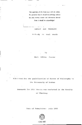 Christ and theology: a study in Karl Barth