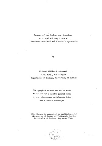 Aspects of the ecology and behaviour of ringed and grey plovers charadrius hiaticula and pluvialis squatarola