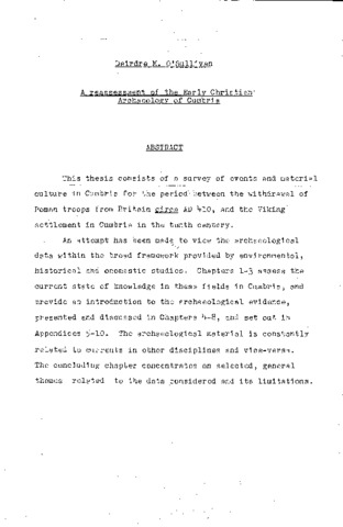 A reassessment of the early Christian' archaeology of Cumbria