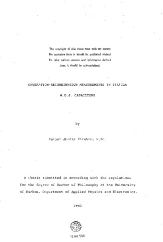 Generation-recombination measurements in silicon M.O.S. capacitors