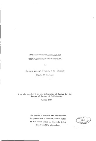The reaction of methanol with synthesis gas to form ethanol in the presence of a cobalt catalyst has been known for many years. The problems relating to the commercial development of this reaction arise from the severe physical conditions required, the low yield of ethanol produced, and wide distribution of products obtained. The objectives of the study were: (i) to assess the influence of physical conditions (pressure, temperature, gas composition) on the reaction, (ii) to examine the effect of promoters and ligand stabilisers on the system, and (iii) to identify any catalytic intermediates observed under reaction conditions. This work employed three major investigative techniques: high pressure infra-red studies, autoclave reactions and basic atmospheric pressure nitrogen line chemistry. A coordinated study of the reactions of the system's components with each other was performed while the complexity of the system was gradually increased. The effects of changing physical parameters such as temperature, pressure, synthesis gas composition etc. were also investigated. The influences of promoter and ligand type on the reaction were also studied. The species observed to be present in the reacting system by high pressure infra-red spectroscopy are related to the proposed mechanism for the reaction. The effect on the reaction of promoters (iodine or iodide) and stabilising ligands (phosphine, arsine or stibine) is discussed in relationship with the chemical and physical properties of the intermediates. The role of solvents in the homologation reaction is considered with regard to the possibility of phase transfer taking place between a carbon monoxide-rich methanol layer and hydrogen-rich hydrocarbon layer. The results from the high pressure autoclave studies are used to determine the most efficient conditions for synthesis of ethanol in terms of the catalyst composition and physical reaction conditions. The high pressure infra-red studies enabled intermediate species to be identified and a reaction mechanism is proposed incorporating this new information.