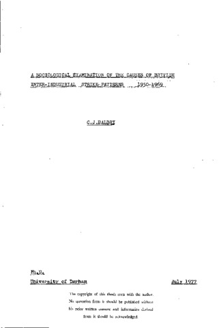 A sociological exanimation of the causes of British inter-industrial strike patterns 1950-1969