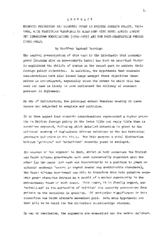 The central preoccupation of this work is the hypothesis that economic power (resting also on non-economic bases) has been an important factoring explaining the ability of states in the recent past to achieve their foreign policy objectives. In addition, the hypothesis that economic considerations have also loomed large amongst these objectives themselves is investigated, especially since the extent to which this has-been the case is likely to have influenced the efficacy of economic pressure in diplomacy. By way of introduction, the principal extant theories bearing on these issues are subjected to exegisis and criticism. It is then argued that economic considerations represented a higher priority in British foreign policy in the later 1950s and early 1960s than is sometimes supposed, following which detailed attention is given to the political economy of Anglo-South African relations at the two historical junctures indicated in the title, For this purpose a vital distinction between 'putative' and 'actualized' economic power is employed. The essence of the argument is that, whilst on both occasions the British and South African governments were each economically dependent upon the other (in the sense that each was theoretically in a position to grant or withhold economic favours in urgent demand and unobtainable elsewhere), the South African government was able to transform this into putative economic power vis-a-vis Britain as a result of a marked superiority in the non-economic bases of such power. This power, it is finally argued, was 'actualized' in the extraction of political and security concessions from Britain on the occasions in question. Of particular significance in this connection was South Africa's new-mined gold. Both main hypothesis are thus held to be valid for the historical relationships studied. By way of conclusion, the arguments are summarised and the method defended.