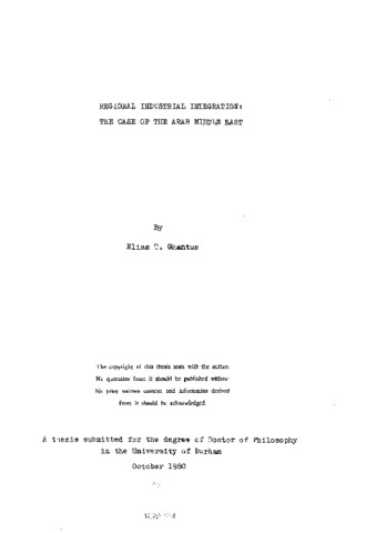 The general theme of this thesis is that economic integration in the case of developing countries ought to be conceived as a strategy for economic development, rather than as a tariff issue. Considering that developing countries are still in the process of realising their economic potential, they can benefit from the dynamic effects of integration. It is argued that economic integration among such countries is marked with uncertainty. Its success hinges to a large extent on the ability of the integrating countries to adopt an "allocative" approach which simultaneously avoids the occurrence of crises in the distribution of benefits and costs of integration and ensures the coordination of investment and production programmes to take advantage of the enlarged market. The "allocative" approach aims initially at partial integration, as it concentrates on the sector or industry where integration can be most effective. After some gains are realised, integration could be extended gradually to include other sectors. This framework is discussed in the context of the Arab Middle East countries, and an approach and a strategy for industrial integration among these countries are suggested. The study comprises two parts. In Part I, an attempt is made to develop a theoretical framework for the study of economic integration among developing countries. It starts by examining in Chapter One the theory of economic integration and its relevance to developing countries, and then in Chapter Two develops an operational methodology for identifying and measuring integration effects of regional projects. Chapter Three reviews the alternative approaches to regional industrial integration experienced by various groupings in Latin America, Africa, and Asia, with a view to appraise the "package deal" approach as an innovative solution to the problem of distribution of benefits and costs, and its desirability for a regional grouping such as the Arab Middle East countries«In Part II, the case for integration among the Arab Middle East countries (to include the Arab countries in Asia together with Egypt and the Sudan) is examined, with an attempt to devise a strategy for an integrated industrial development among these countries* As a starting point, Chapter Pour gives a critical account of the attempts at regional economic cooperation and integration in the Arab Middle East region, and the emerging role of capital surpluses accruing to the oil countries in promoting the idea of integration. Chapter Five discusses the economic framework of the countries under consideration, in order to assess the role of economic integration as a desirable alternative to national development. Chapter Six discusses the developing industrial growth patterns in the above countries, and relates integration to future industrial growth. Chapter Seven explores some of the possibilities for integration among the Arab Middle East countries in specific industries in a number of industrial sectors whose economic viability can be enhanced by the pooling of scarce resources, skills, and markets. This will be followed in Chapter Eight by a methodological study for the assessment of the integration potential in one of these industries which is fertilizers. Chapter Nine focuses on the elements which are deemed central in the framing of a strategy for an integrated industrial development based on the "package deal" approach in the region. Finally, Chapter Ten presents a concluding summary of the study.