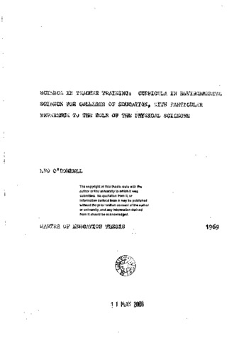 Science in teacher training: Curricula in environmental science for colleges of education, with particular reference to the role of the physical science.