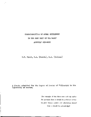 Characteristics of rural settlement in the corn belt of the North American mid-west