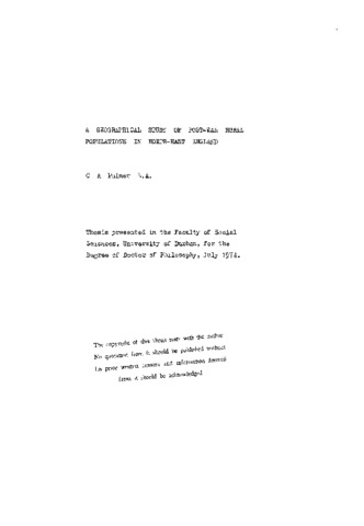 A geographical study of post-war rural populations in North-East England