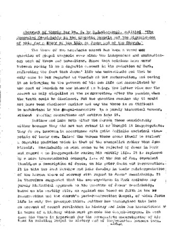The concealed messiahship in the synoptic gospels and the significance of this for the study of the life of Jesus and of the church.
