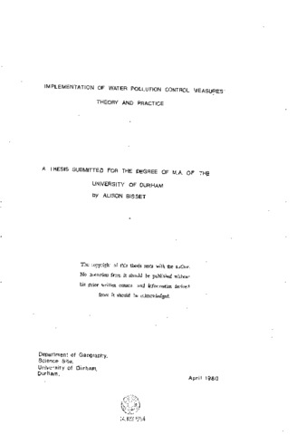 Implementation of water pollution control measures: theory and practice.