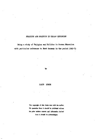 Religion and politics in German education: being a study of religion and politics in German education with particular reference to West Germany in the period 1945-73