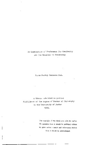 An examination of preference for complexity and its relation to creativity