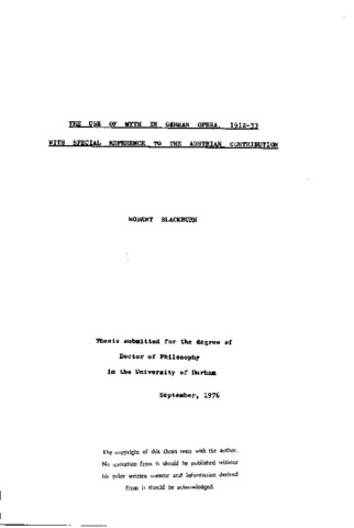 The use of myth in German opera 1912-33 with special reference to the Austrian contribution