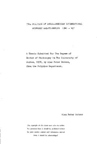 The thesis is an attempt to give a detailed historical narrative of a series of negotiations between the U.S. and the U.K. during the period 1941 – 1945. It is an analysis of the political controversies which arose between the two countries over economic issues. There are three main aims to the story. One is to elucidate the reasons for the economic policies pursued by the two countries, the second is the explanation of the modification of such policies and the third is to account for the subtle shifts in bargaining tactics. The account is divided into six chapters. The first chapter deals with a number of issues in an attempt to indicate some of the difference between the two countries over economic policies. The chapter includes brief descriptions of the introduction, by Britain, of economic controls and her early attempts to finance the war effort, the Atlantic Conference of 1941 and U.S.-U.K. talks on a supplement to the 1938 trade agreement. The second chapter covers the consideration for Lend-Lease talks, and chapters three and four the negotiations to establish the I.M.F. The fifth chapter deals with Anglo-American commercial talks and British attempts to have The Export White Paper of 1941 superseded. The final chapter deals with a wide range of economic talks and culminates in a detailed analysis of the talks which resulted in the U.S.-U.K. Financial Agreement of 1946. The narrative has been constructed primarily on the basis of diplomatic correspondence, cabinet and departmental papers from the P.R.O. I have also used 'The Foreign Relations of the U.S.', Hansard, the Congressional Record, both U.S. and U.K. government papers, and an extensive range of autobiographies.