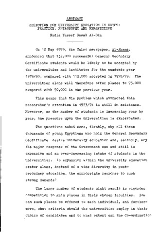 Selection for university education in egypt:: practice, philosophy and perspective