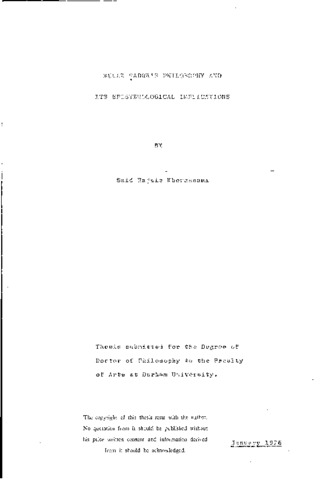This is a study of the epistemological implications of Mulla Sadra's philosophy. It has four major parts, as follows: Part I: Mulla Sadra's life and works. Part II: A brief account of his Sufism, with reference to his mystical teachings and his attitude toward Sufism and the Sufis. An attempt has been made to delineate his Sufi perspective and to spotlight some of his mystical ideas and assumptions which have epistemological significance. Part III: A study of Mulla Sadra's major philosophical doctrines. His ontological doctrines, such as the doctrines of the primordiality, the Unity, and the gradation of existence as well as his account of the unequivocality of existence and mental existence have been examined critically. His doctrine of substantial motion has been studied and some of its major implications have been considered. His psychological ideas which explain Mulla Sadra's view of man's nature, his doctrine of the unity of the intelligent and the intelligible, which is Sadra's analysis of the human mind, and also his eschatological doctrine of bodily resurrection have been studied. Part IV: presents an epistemological account of Mulla Sadra, with reference to his philosophical and mystical ideas. His definition of knowledge has been critically examined, and the criteria of truth and falsehood which are either implicitly or explicitly advocated by Mulla Sadra are specified and examined. At the end a conclusion has been provided which puts the general structure of Mulla Sadra's system in perspective and presents an overall epistemological evaluation of it.
