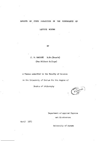 It has been known for a number of years that the noise figure of a simple receiving system is directly proportional to the conversion efficiency of the mixer. Any improvement in this will have great bearing on the performance of a communications system, offering the possibility of an increased range of reception. The narrow-band open - circuit lattice mixer has been shown theoretically, under certain conditions, to produce a loss approaching zero. Exploratory low frequency circuits have given conversion power losses as low as 1 dB. The increasing use of communication systems at microwave frequencies brings with it the demand for low-loss mixers at these higher frequencies. As the frequency of operation increases, the parasitic diode reactance's have a more pronounced effect on the mixer performance. The original work presented here analyses the effect of the parasitic diode package capacitance on the performance o f a narrow-band open - circuit lattice mixer. The main conclusion to be drawn from the analysis is that for practical diodes used with local oscillator powers normally encountered in microwave mixers, the conversion power-loss of the mixer will, generally, be less than 1.5 dB. Another important result from the analysis is that the optimum terminating resistances are considerably reduced when even small amounts o f package capacitance (eg. 0.1 pF) are present. This may be considered as being an advantage when matching the lattice to a 50 Ω coaxial system. An experimental mixer at L-band constructed by the author using lumped circuit components, gave a 2.8 dB conversion power loss at 20mW of local oscillator drive. This was a considerable improvement on existing commercial models. Had it been a broad-band lattice mixer, it would have given as 3.6 dB minimum conversion loss. On the other hand a narrow-band mixer would have given 3.75 dB minimum. The practical mixer circuit was a modification of the one first analysed in detail by Kulesza, in that the input transformer was resonated. This configuration solved the problem of feeding the local oscillator at the input of the lattice. The 25 MHz. 3 dB band-width of the mixer would be considered sufficiently large enough for use in a communications network. Less power at the local oscillator, frequency was required when comparing this mixer with some 2-diode; mixers; in some cases producing a power saving of 50%. Experimental verification of the analytical work on the effect of diode capacitance gave within 0.9 dB of the theoretical values for low values of capacitance and for local oscillator drive levels used in practice. Finally, the 'K' mixer parameters for the case when diode package capacitance is present in a narrow-band open-circuit lattice mixer are solved. These will be of importance to any future analytical work on lattice mixers.
