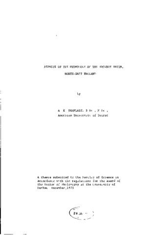 A hydrological study was undertaken to investigate precipitation, evapotranspiration and runoff in the Browney basin, north-east England. The areal and seasonal distribution of precipitation during the period 1968-1972 were analysed and frequency analysis were carried out on the amount of rainfall and the number of raindays per month during the period 1939-1973 at Durham Observatory. There was a high correlation between yearly precipitation and altitude. October and September were the driest months of the year while February was the wettest month. The relatively high intensity rainfall in the late summer months gave evidence for the occurrence of convectional rain during this time of the year. A wide range in the amount of rainfall and in the number of rain-days for any given month at Durham Observatory was observed. To measure evapotranspiration two sets of evapotranspirometers were installed at two locations just outside the extreme eastern and western margins of the catchment. Other methods for measurement for estimation of evapotranspiration in the catchment were also used. These were the Penman and Thornthwaite formulae, the catchment water balance method and simple hydraulic lysimeters. The results of measured evapotranspiration at the two locations indicated greater evapotranspiration at the higher elevation. The use of simple hydraulic lysimeters for the measurement of actual evapotranspiration was discarded because of significant differences in the results of the replicates. A comparison of the catchment water balance evapotranspiration with the results from the other methods revealed that there was some moisture deficit in the catchment especially during the late summer months. Studies of runoff data from the catchment showed significant variations in the yearly, seasonal and short term patterns. These differences were explained by the differences in the amount and distribution of precipitation, evapotranspiration and antecedent soil moisture conditions. The overall hydrology of the catchment was studied by the simulation of the flow records during the period 1969-1973, using the Stanford Watershed Model IV. The results obtained revealed high correlations between the monthly recorded and simulated flows. The mean monthly recorded flow during the five year period exceeded the simulated flow by 2 percent. The actual evapotranspiration and groundwater components of the hydrologic cycle where also studies using the results of the simulation method.
