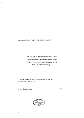 The pigeon's colour vision was examined, using behavioural and physiological techniques Avian colour vision has aroused interest because of the suggestion that chromatic discrimination in birds is mediated by a single cone pigment, combined with several types of retinal oil-droplets which act as differential colour filters. Using an operant conditioning method, difference thresholds were measured throughout the spectrum (400 - 680 nm) to generate a wavelength discrimination function, which yields information about the type of visual system an animal possesses. Earlier work had suggested that birds are trichromatic, but the finding of three clearly defined regions of optimum discrimination at 595, 530 and 460 nm indicates instead that the pigeon's colour vision is at least tetrachromatic. The pigeon's saturation discrimination abilities were also studied using a similar technique Saturation increased towards the spectral extremes while a point of least saturation occurred at 597 nm. Additional subsidiary saturation minima were found at 443, 496, 536 and 662 nm. These results largely corroborated those of the wave length discrimination experiment but indicated that the pigeon's visual system may be more complex than a tetrachromatic one Preliminary to an extension of the wavelength discrimination study, the pigeon's spectral sensitivity was measured electroretinographically The resulting spectral sensitivity curve peaked at 560 - 580 nm, in agreement with previously reported data. Furthermore, spectral sensitivity extended well into the ultraviolet region (<400 nm), where sensitivity was quite high In a second study of wavelength discrimination, results of the first experiment showing three threshold minima were confirmed and, additionally, pigeons maintained good discrimination between wavelengths within the ultraviolet range. Experimental findings were discussed in terms of the physiological mechanisms underlying visual performance, in particular, the present results, together with other evidence, suggest that the retinal oil-droplets are not basic to avian colour vision The functional significance of the pigeon's colour vision was also considered