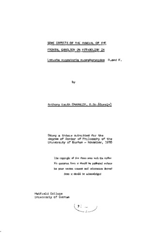 A study has been made on the effects of the removal of the frontal ganglion from adult Locusta migratoria migratorioides R & F on various aspects of metabolism. A decrease in lipid and carbohydrate reserves was observed in the fat body of operated animals although this was less marked when compared with starved specimens. This decrease in fat body reserves was not due to an increased release into the haemolymph nor to increased utilisation. Indeed oxygen consumption was significantly lower than in operated controls. The fine structural appearance of the fat body cells indicated a cessation of the normal functional development. This tended to be confirmed by the observation that fat body from operated animals showed a reduced ability to incorporate C(^14) glucose into triglycerides in vitro. Six digestive enzymes have been characterised and the optimal conditions for assay employed in determining the effects of frontal ganglion removal and starvation on the activities of these enzymes in various regions of the gut. Both treatments resulted in a reduction in amount of enzyme activity. The distribution of enzyme activity was also affected such that the foregut of starved and frontal ganglionectomised treatments had a smaller proportion of the activity than in the control. The fact that frontal ganglion removal effects a dramatic reduction in haemolymph volume was confirmed. Ultrastructural changes in the Malpighian tubules adds support to the suggestion that this reduced blood volume vas a result of chronic diuresis. However, this was shown not to be due to an effect on the activity of the Na (^+)K (^+)ATPase exchange pump. Removal of the frontal ganglion was shown to result in a cessation of growth and to reduce or prevent altogether the release of neurosecretory material from the corpus cardiacum, confirming previous work on larvae and adults. The above observations are discussed in the light of endocrine control of metabolism and the proposal that food passage through the gut is reduced in frontal ganglionectomised animals.